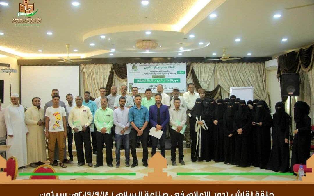عقدت يوم امس السبت بمدينة سيئون بحضرموت الوادي والصحراء حلقة نقاش حول دور الاعلام في صناعة السلام نظمتها مؤسسة أرض السلام للإعلام والتنمية الانسانية والحقوقية تزامنا مع اليوم العالمي للسلام الذي يصادف 21 سبتمبر من كل عام , وتهدف الى غرس المفاهيم والتعريف بالتجارب الاعلامية في صناعة السلام .