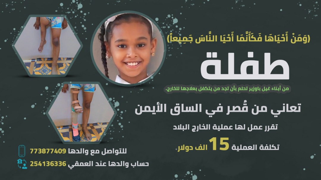 حضرموت : مبادرة شعبية تنجح في جمع تبرعات بمبلغ 15000$ لعلاج طفلة خلال يومين فقط