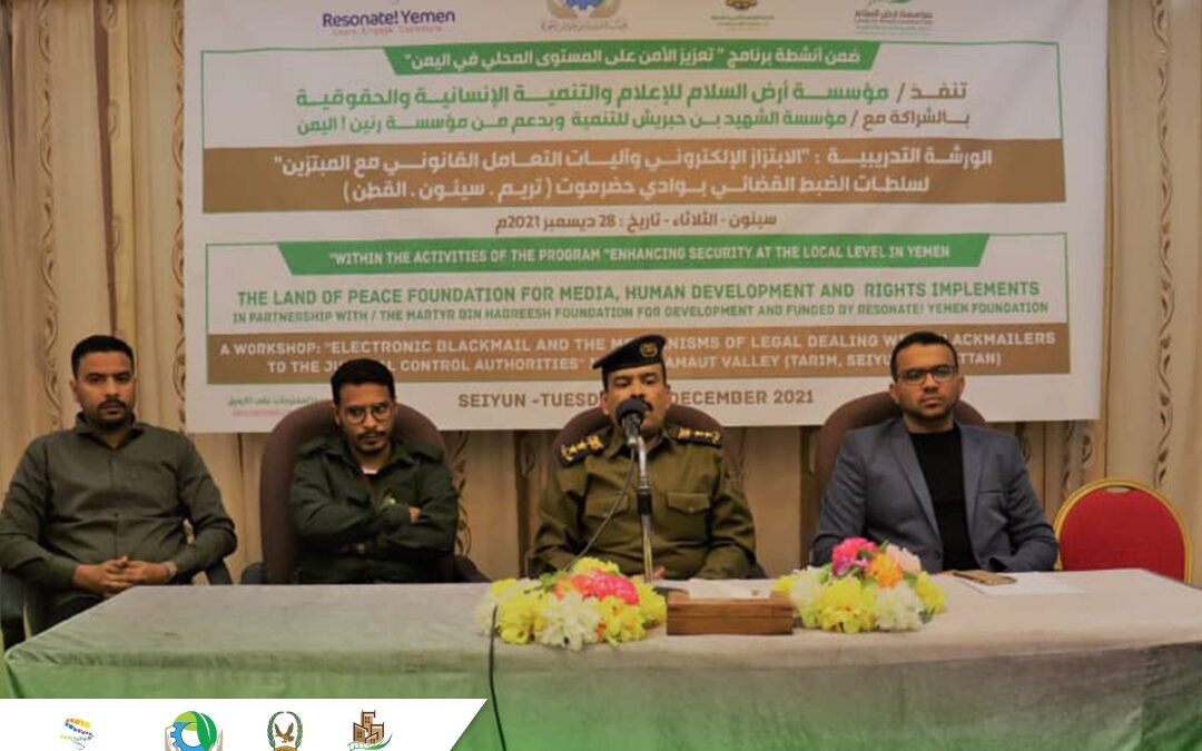 ضمن حملة مكافحة الابتزاز الإلكتروني “بلّغ بأمان” أقامت مؤسسة أرض السلام للإعلام والتنمية الإنسانية والحقوقية صباح اليوم الثلاثاء الورشة التدريبية بعنوان “الابتزاز الإلكتروني وآليات التعامل القانوني مع المبتزين”
