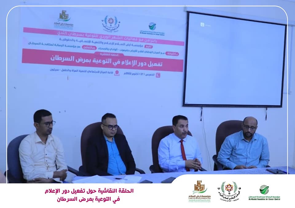 تحت شعار لا تكوني الثامنة .. ارض السلام تنفذ حلقة نقاشية حول تفعيل دور الاعلام في التوعية بمرض السرطان