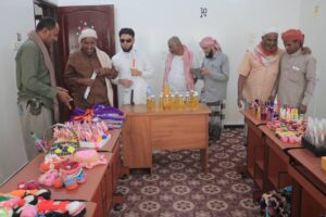 وطاف الحاضرون على أقسام المعرض، بمعية الأستاذ عبدالله باصبيح مدير فرع الجمعية، والأستاذ سامي الكاف رئيس جمعية المكفوفين وادي حضرموت، والأستاذ عقيل الكاف مسؤول العلاقات، متعرفين على شرحٍ وافٍ عن محتويات المعرض، مستمعين من القائمات على قسم الكفيفات على تفاصيل المنتجات الحرفية والصعوبات التي واجهتها الكفيفات في هذه الأعمال.