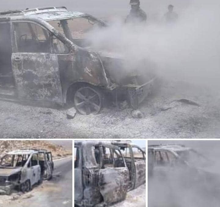 اندلع حريق بسيارة مواطن بالقرب من عقبة عبدالله غريب بمديرية غيل باوزير اثناء سفره إلى مدينة المكلا قادماً من وادي وصحراء حضرموت.