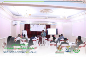 هذا وتلقى قرابة عشرين متدرب\ـة من أعضاء المبادرات التطوعية بحضرموت على يد المدرب الأستاذ عمر باشداده مجموعة من المعارف والمعلومات حول اساسيات عقد الاجتماعات الاحترافية الإدارية ودور السكرتارية والارشفة وتسجيل محاضر الاجتماعات ولجانها مع تنفيذ انشطة عملية ونماذج لها ومناقشة ابرز المشكلات الإدارية التي تعرقل سير الاعمال داخل المبادرات والفرق الشبابية لتحقيق إنتاجية أفضل وتحسين العمل الإداري لهم.