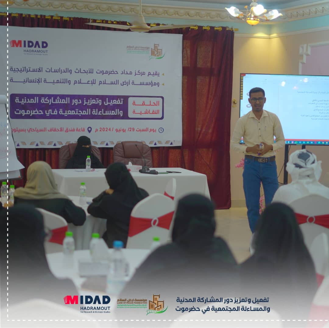 ارض السلام ومركز مداد حضرموت يعقدان حلقة نقاشية حول تفعيل المساءلة المجتمعية بحضرموت: